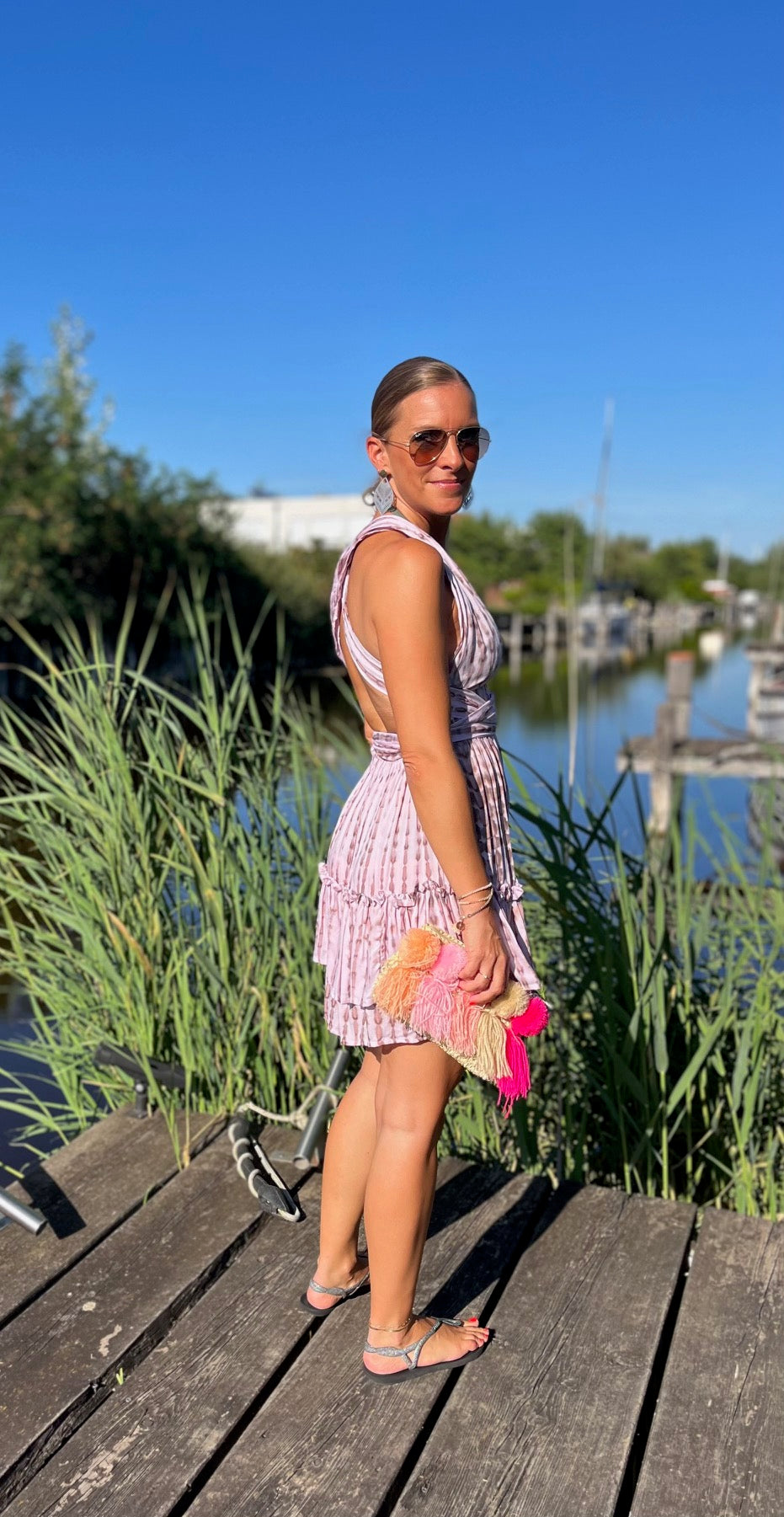 Suchst Du nach einem Kleidungsstück, das Dir unzählige Styling-Möglichkeiten bietet und Dich mühelos von Strand zu Bar begleitet? Unser Mini Dress "Alicia" ist genau das richtige für Dich! Dieses charmante Minikleid ist aus 100% Viskose gefertigt, was nicht nur für ein luftiges Tragegefühl sorgt, sondern auch für sanft fließende Bewegungen. Der elegante Stoff fühlt sich traumhaft auf der Haut an und bietet hohe Atmungsaktivität, ideal für heiße Sommertage.